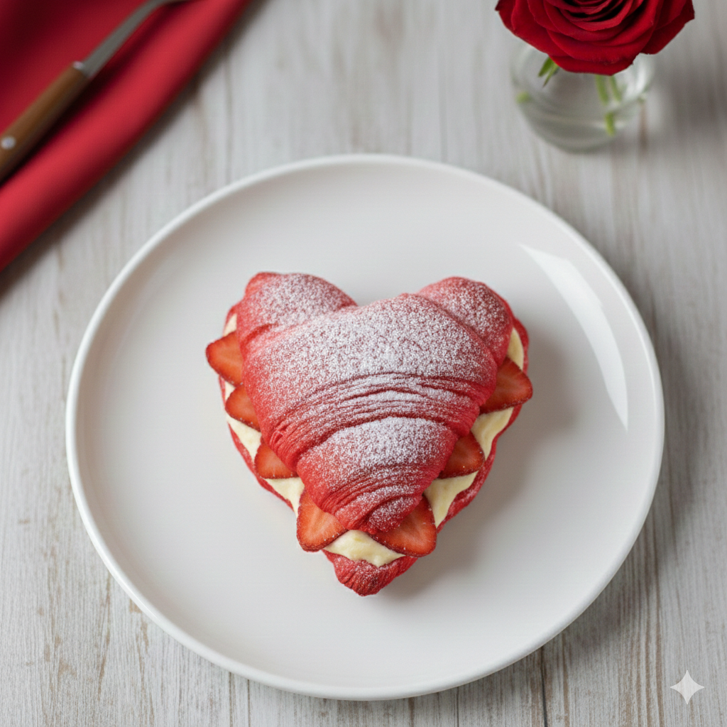 Indulge in a heart-shaped affair: our flaky vegan croissant meets velvety crème pâtissière. Bursting with fresh, blushing strawberries, it’s the ultimate plant-based seduction. The perfect edible “I love you” for a Valentine’s morning they’ll never forget. Limited edition. Pure passion. Zero compromise. Grab yours before they’re gone.